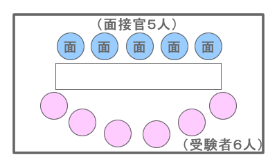 ◆面接の方法グループ面接 面接官5人VS受験者6人