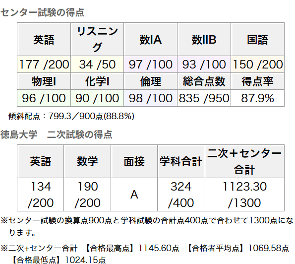 前期:徳島大学 医学部 医学科(合格)後期:鳥取大学 医学部 医学科(受験せず)