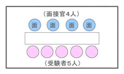 ◆面接の方法集団面接 面接官4人VS受験者5人