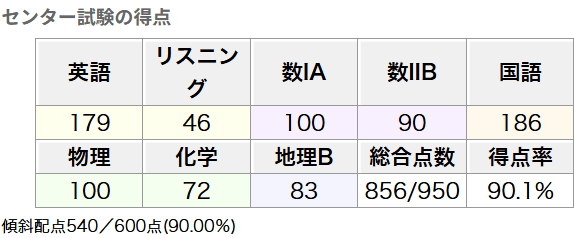センター当日は日ごろの集中力よりもケタ違いの集中力が発揮されるので、日ごろあまり芳しくない点数を取っていても、自信を持って挑めば日ごろの点数よりはるかに良い点数が取れるかもしれません(笑)。また、センター当日は休み時間にチョコレートでエネルギー補給をし、外の空気を吸って頭をクリアにすることをお勧めします。
