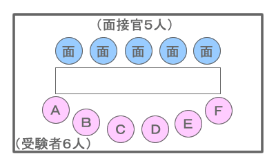 ◆面接の方法グループ面接 面接時間:20分 面接官5人VS受験者6人