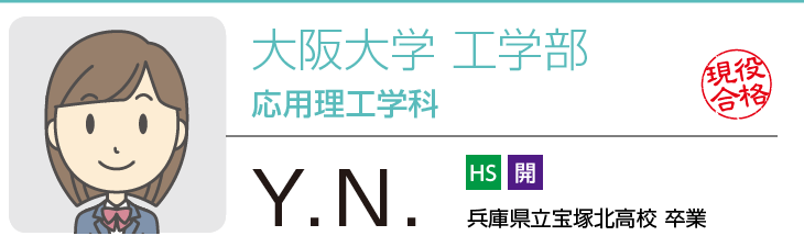 - 前期:大阪大学 工学部 応用理工学科(合格)