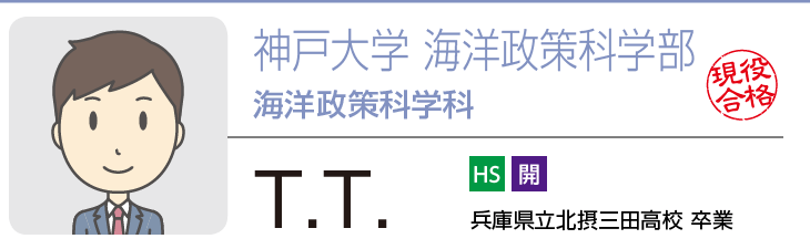 - 前期:神戸大学 海洋政策科学部 海洋政策科学科(合格)