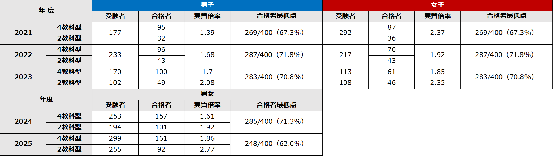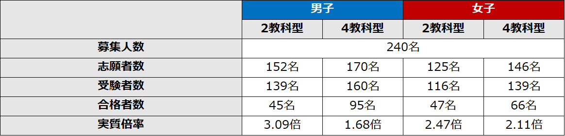 ※合否は2教科型受験者と4教科型受験者を同列、高得点順に並べたうえで決定