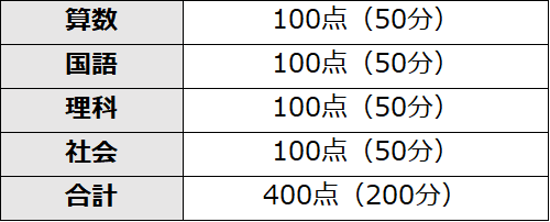 ※(A)2教科(国語・算数 各100点)の合計点×2(計400点)(B)4教科(国語・算数・社会・理科 各100点)の合計点(計400点)