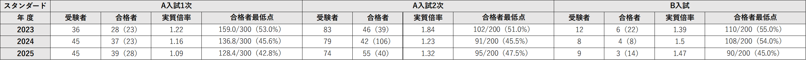 入試結果:2025年度