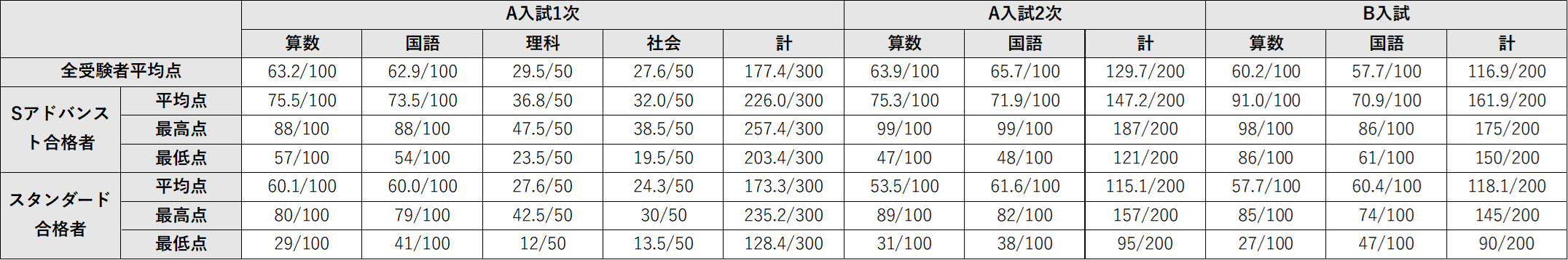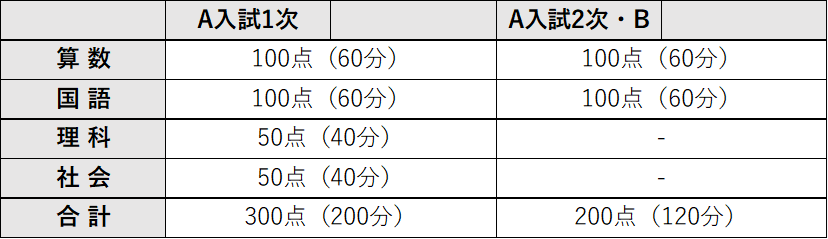 ※A入試1次、4教科型は①4教科合計、②(算+国+理)×1.2、③(算+国+社)×1.2の得点のうち、最も高い得点を合否判定得点とする