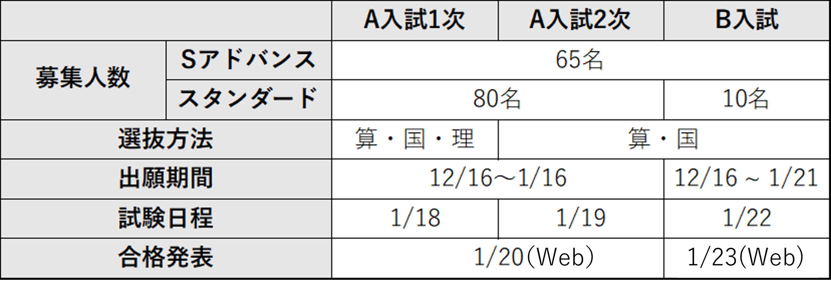 例年通り、A入試1次、A入試2次、B入試の3度入試機会が与えられ、募集人数や日程など変更はなかった。