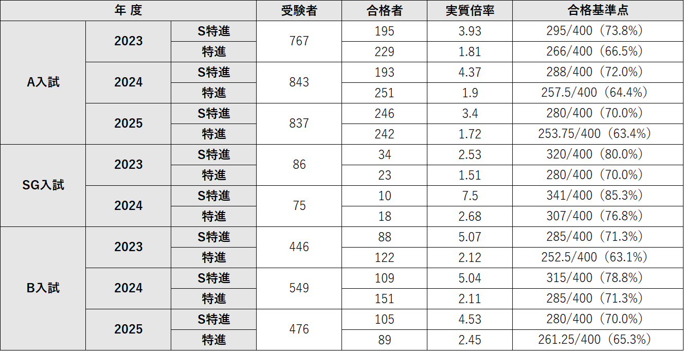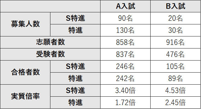 ※特進の実質倍率は、スーパー特進+特進の合格者から算出