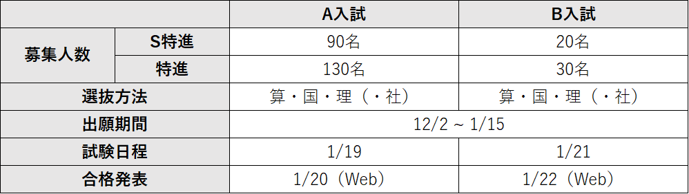 ※A入試専願受験の場合、A入試成績+10点とし合否判定を行う。