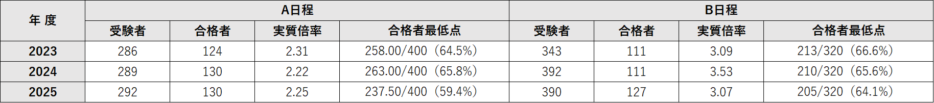 入試結果:2025年度
