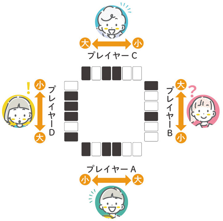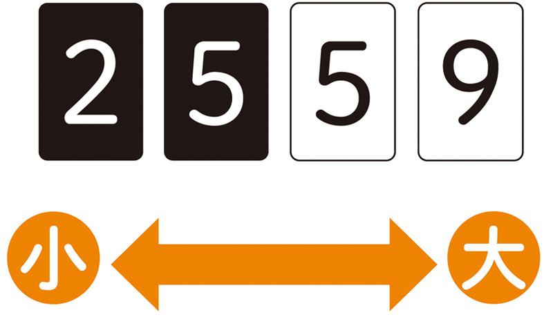 ※黒と白のカードで同じ数字がある場合は、「黒の方が小さい」とします。