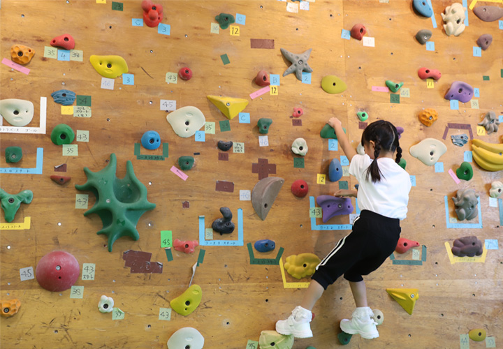 ゲーム要素を取り入れたボルダリングで楽しくレベルアップしていきます。コースごとにレベル分けをし、ひとりひとりの課題に向けて目標設定をし、練習に励みます。