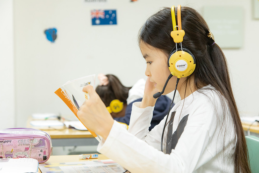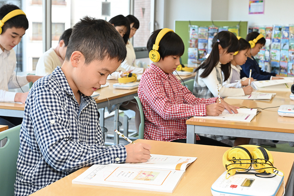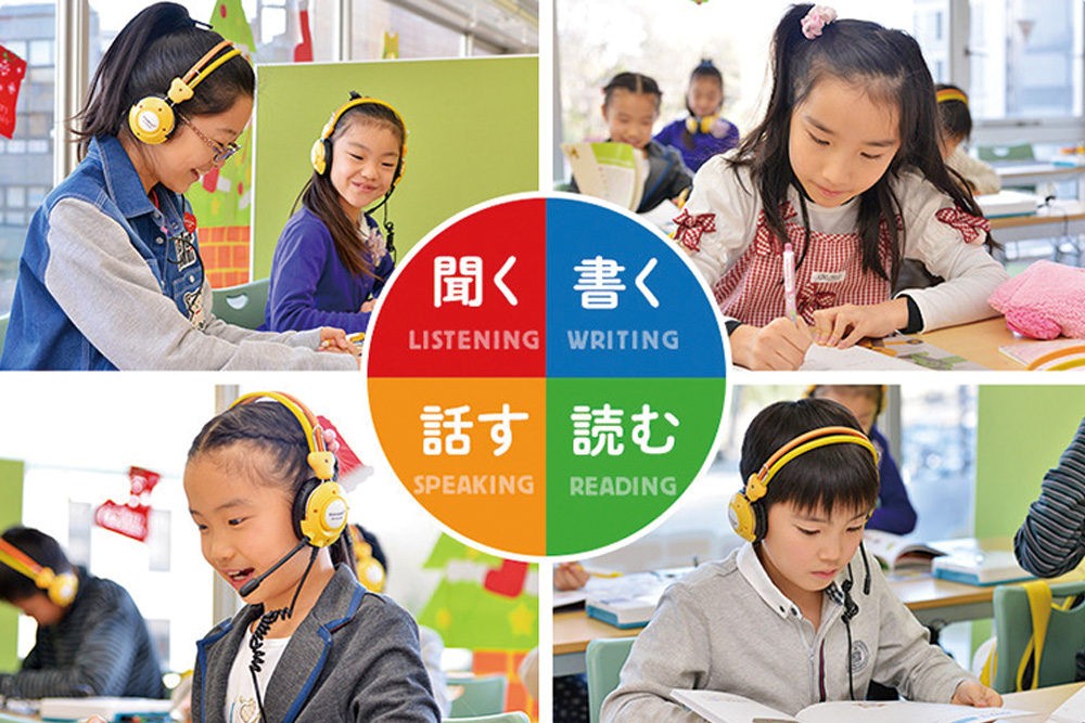 ネイティブの英語音声を聞いて発音→発音した単語や文をくり返し書いて覚える→覚えた単語を使って英文を読む→読んだら理解しているかどうか英語で質問に答える。こうした独自の学習法で「聞く」「話す」「読む」「書く」の4技能がバランスよく習得できます。