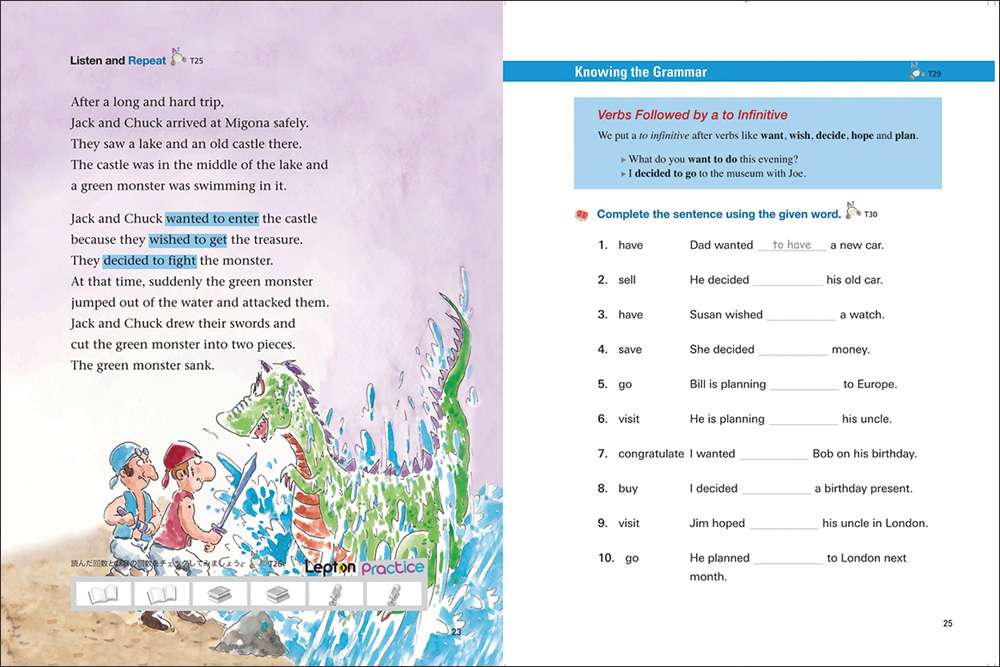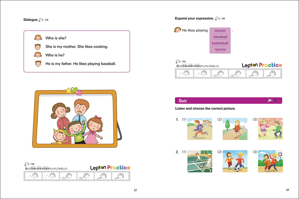 子ども特有の「すぐに忘れてしまう」傾向に対処するため、Leptonのテキストは、以前に学習したことを思い出しながら、新しいことが同時に学べる“スパイラル・カリキュラム”にのっとった設計になっています。先に進めていくことで定着度が増していきます。