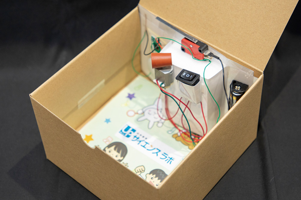 フタを開けると音楽が聞こえ出すオルゴール箱を作ります。スイッチを切り替えると、ビックリ箱にも変身します。スイッチを利用した楽しいものづくりです。