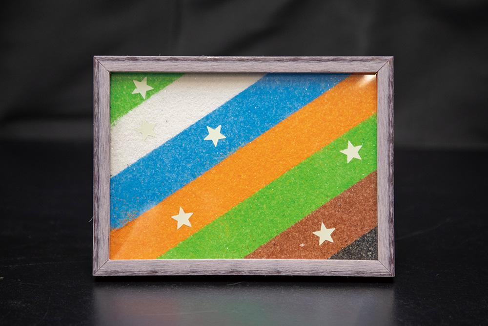 身近にある砂を用いて実験します。砂をペットボトルに入れて砂時計を作り、入れる量で時間が変わることも調べます。カラフルな砂絵も作って持ち帰ります。