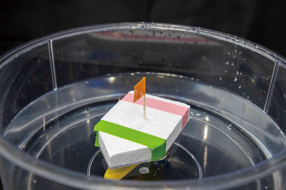 自分で船を作り、動かすことで、ものの動きについての興味へとつなげます。水の力で進む船や、スクリューで動く船をつくって、持ち帰ります。