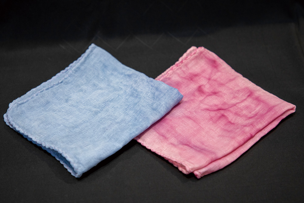 ブルーベリーからアントシアニンという色素を取り出して、レモンやせっけんなどで色変わりを楽しみます。また、ハンカチ染めにもチャレンジします。