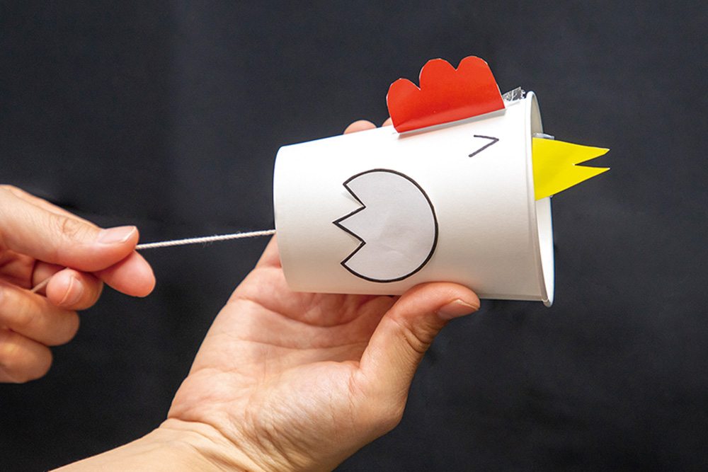 コップやバネなど、身近なもので音を出して、動物の鳴き声を作ります。音が振動して伝わることを、楽しみながら学びます。