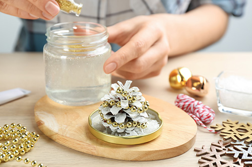 キラキラと光るスノードーム工作を行います。 ![]()