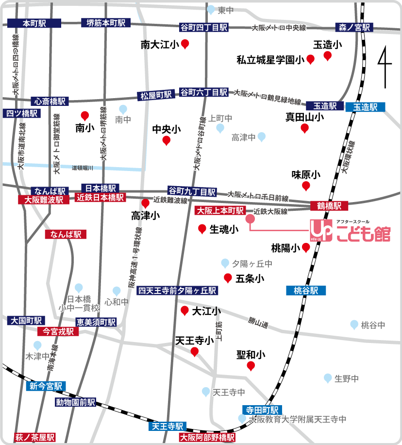 【公立】真田山小/五条小/味原小/生魂小/桃陽小/大江小/天王寺小/聖和小/玉造小/高津小/中央小/南大江小/南小