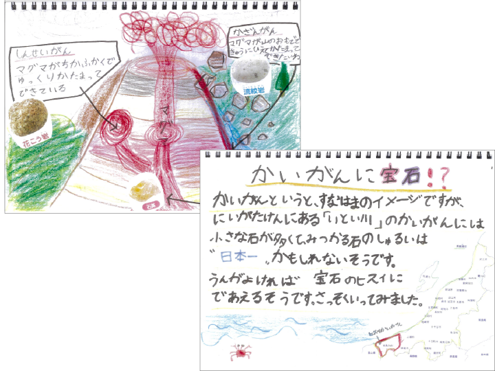 ヒスイ探しや鑑定の様子が臨場感溢れる文章で表現されています。実際に海岸で探した後、博物館で鑑定してもらったり、持って帰った石を本で調べながら分類したりと、最後までワクワクの大冒険です。