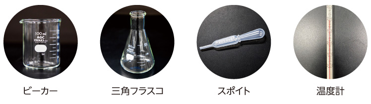 水溶液とはどんなもの?ビーカーや三角フラスコなどの実験器具を用いて、水溶液を作成します。またカラフルな人エイクラづくりに挑戦しよう!
