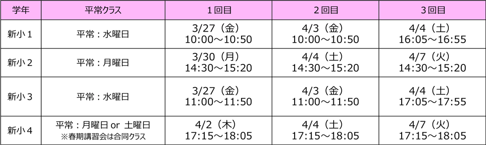 新小1生の方の受講受付もスタートしています